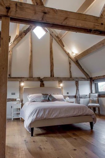 If you have a period cottage with a loft room, retain character by leaving the joists and beams exposed, as this loft conversion example shows. Your loft conversion construction company will be able to advise you on this.